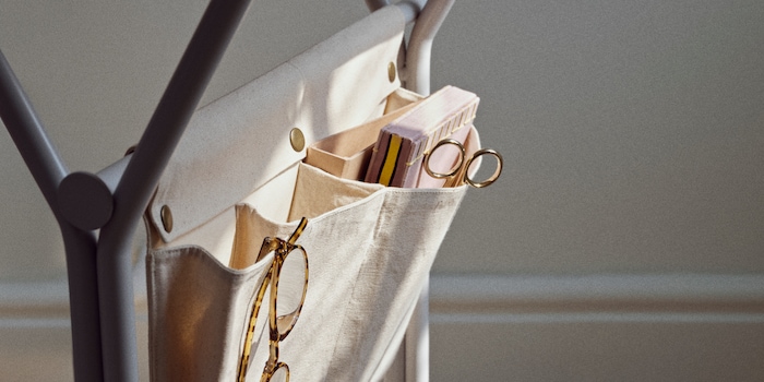 The good idea of the two brands is easy to copy. Just get yourself a hanging organiser with several pockets and store small items in it that you always want to have at hand but don’t want lying around. Attached to your inside or outside walls, they free up floor space and replace bulky boxes. That’s why they're perfect for small rooms.