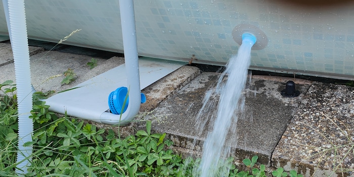 Ever experienced the following when emptying the pool? Although the outlet of an above-ground pool is quite low, a few centimetres of water still remain after draining it. In this case, I recommend using a suction pump to get rid of the last bit of water. It can also speed up the entire emptying process.