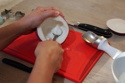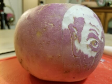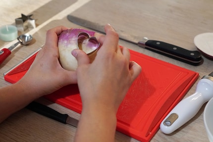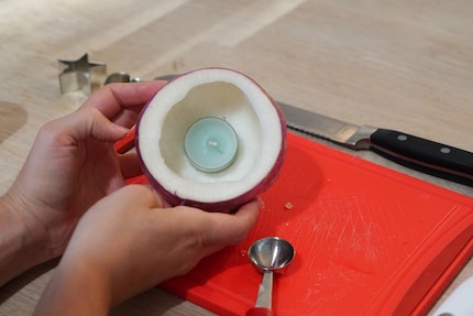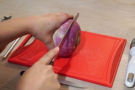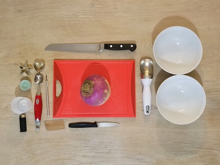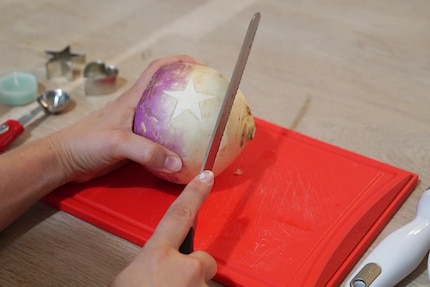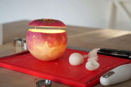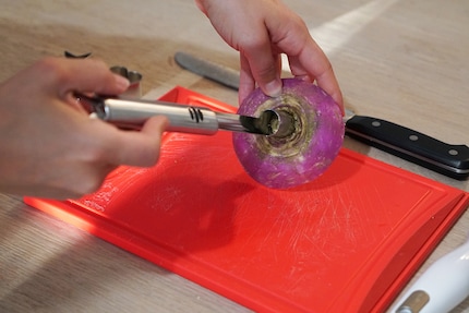 Now the melon cutter comes into play! You can now use it to hollow out the turnip. Always be careful when doing this! It's better to work a little more slowly to avoid breaking anything.