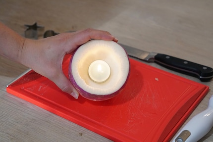 If you want your light to shine through the top, you can pierce the lid of the Räbenliechtli with the corer. If you don't fancy a boring round hole, you can also use a baking tin.