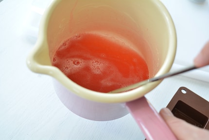 Step 2: Place the pot either in a water bath or directly on the cooker and melt the soap in it.