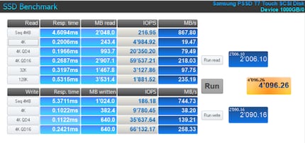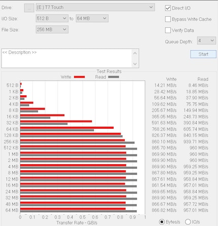 Lese- und Schreibgeschwindigkeit T7 ATTO Disk Benchmark