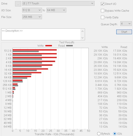 IOPS T7 ATTO Disk Benchmark