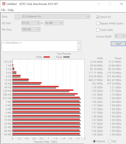 Lese- und Schreibgeschwindigkeit Extreme Pro V2 ATTO Disk Benchmark