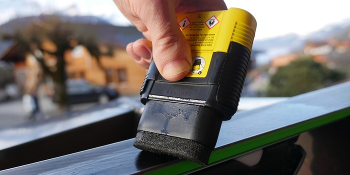 Would the occasional quick service not be as easy as they would have you believe? Am I at risk of wax poisoning? My biggest worries disappear when I see the Toko video tutorial with a man preparing his skis with no gloves, no mask and no visible window in the room. My son certainly thinks the man in the video looks like a minion, but that's not due to the toxic fumes, but rather the man's fluorescent yellow apron. Otherwise, he looks normal. No signs of drowsiness or dizziness and use couldn't be simpler: dry the skis or snowboard, apply the wax to the sole and edges, wait at least ten minutes and polish. Done.