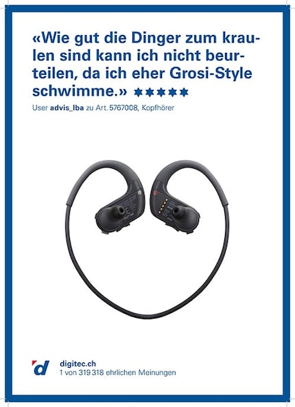 Sony's sports headphones are featured in our latest poster campaign. Advis_lba’s comment about them was: «I can't judge how well they perform when you're crawling, as I'm more of a granny-style swimmer.»