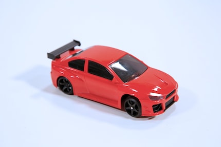 The racer features a front and rear spoiler, an air inlet under the bonnet, a rear diffuser with twin exhaust pipes and tinted windows. Looks-wise, it has everything a real sports car would. This red racer screams high speed and driving pleasure.