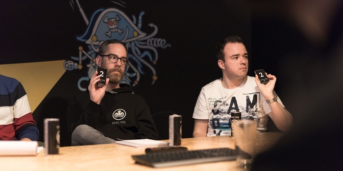 Discipline, however, is still strongly present. Spectre judges and evaluates itself intensely. What were the weak points of their last operation? What can be worked on more efficiently? Then comes the decision process. Time requirements are discussed. Using numbered cards – Spectre branded of course – every team member can judge how many hours should be invested into this project or side project. Spectre won’t reveal what they’re currently working on.