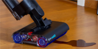 It feels like everything spilled disappears from the floor in a single wipe. The wet cleaner even reaches the oats in the grooves and the three mustard splodges vanish in the first attempt. Because it happens so quickly for me to comprehend, I spread another strip of mustard between two floor tiles and am again amazed at how the FCV 4 sweeps everything away except for a tiny spot.