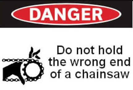 Danger: Do not hold the wrong end of a chainsaw. Shoot, I’ve been doing that wrong for years!