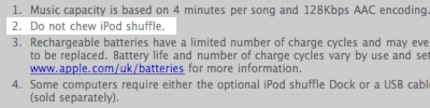 Warning: Do not chew iPod shuffle. If you are feeling a bit peckish, make sure to swallow your iPod whole.