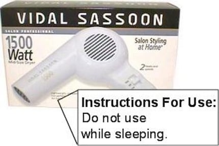 Ever wanted to stick your kid in the washing machine to give it a thorough clean? Or you may be inclined to holding chainsaws by their chain? Some manufacturers seem to seriously doubt their customers’ sense of judgement.
