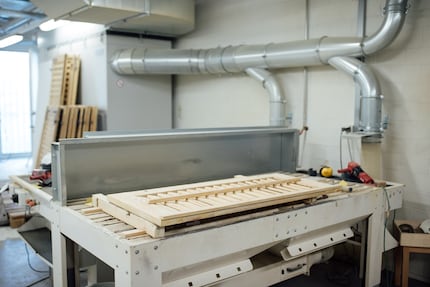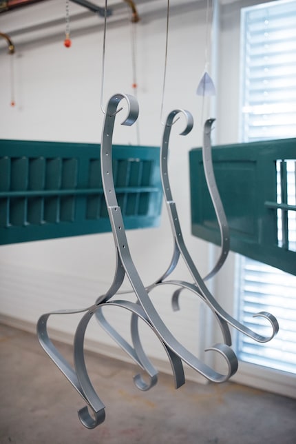 Before they can be stray-painted, the shutters are hung on something that looks like a butcher's hook and are pulled into a small room by a rail system. Ali K. is spray-painting the legs of a bench in silver. While he's doing his work in protective clothing, I'm standing in the spray-painting room in my usual clothes and am feeling a little dizzy from the fumes. The material store next door also smells of paint and varnish. «You get used to it. More than that – you almost need the fumes after a while,» Tschumi jokes.
