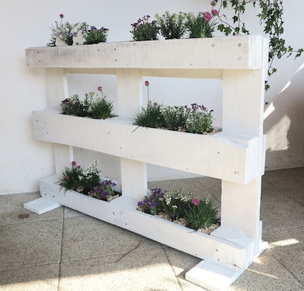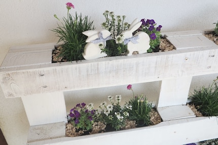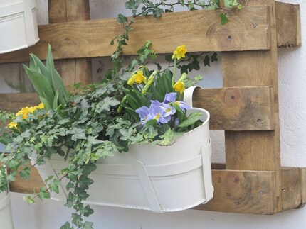 And of course I also have an idea for those who have to be quick. Simply hang a whole or half pallet on the wall and you have a wonderful holder for all kinds of hanging pots. I love this variation. You can decorate again and again.