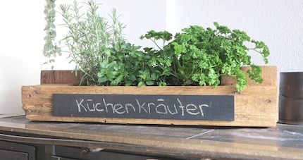 Of course, a herb garden also looks great on the wall - it is a real eye-catcher, whether indoors or outdoors. The procedure is the same, simply mount a sturdy wall bracket instead of the feet.