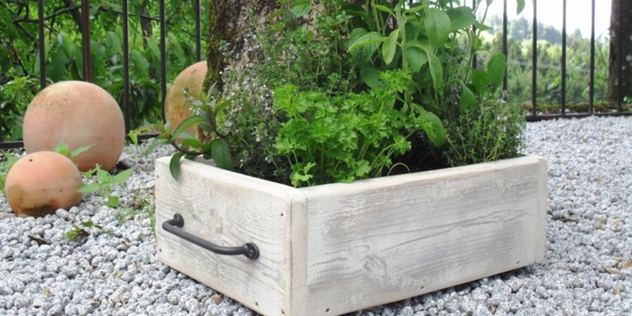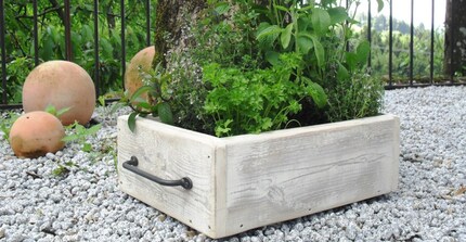 Simply mount a base and you have a simple herb or flower box. Again, sand well and line with foil. There are no colour limits here. Whether antique wax, glaze or paint - anything goes.