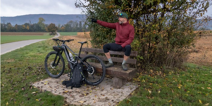 Nach einer halben Stunde ist der Regen so stark, dass ich einen kurzen Boxenstopp einlege und die Jacke wechsle. Zum Glück habe ich die wasserdichte Softshelljacke Pro SL von Endura am Morgen gepackt. Diese hatte ich im letzten, dauerverregneten Frühling bereits getestet und für gut befunden.