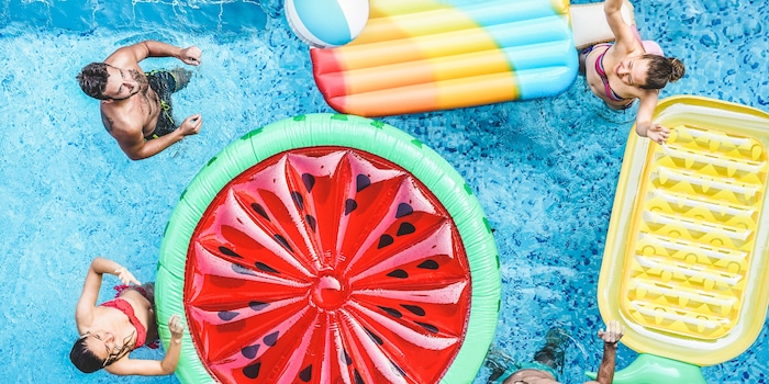 With sun deck and cup holder? A cosy pizza with a cheese rim as a neck rest? Or a classic plain colour? Opinions differ when it comes to (floating) air mattresses.