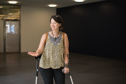 «So-so. I hobble around on crutches and the doctors aren’t sure it will ever get better. As I said before, I need a wheelchair for longer stretches. I also tire easily and need to lie down quite a lot. Sitting is very painful, but thanks to my special sitting cushion, I can put up with up to six hours. One of my legs was paralysed for a while. This shortened the muscles, sinews and tendons a lot and might require another operation. So for the time being, I can only work 20 per cent. It’s really getting to me because I would like to work. The doctor’s keep saying I need to be patient. But patience isn’t one of my strengths (she smiles) ».