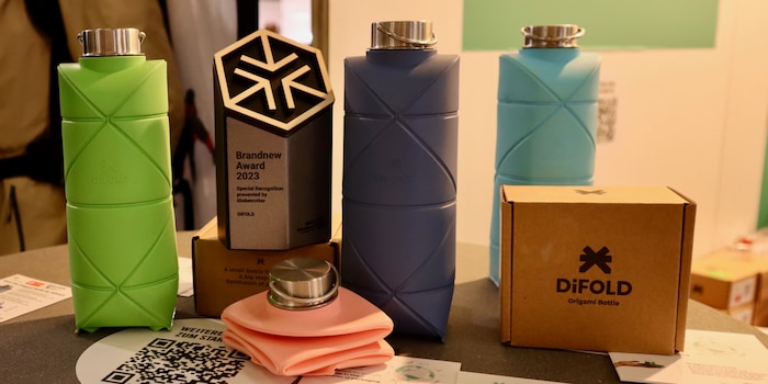 The Bulgarian company Difold wanted to find a remedy. It developed a 0.75 litre water bottle that can be folded to a fraction of its size. Difold's folding bottle was honoured with the Globetrotter "Brandnew Special Recognition Award" at the award ceremony at the ISPO sports trade fair. Also this year, Difold has already won a Red Dot Design Award, an IF Design Award and a Design Educates Award. Old butterfly, I think.