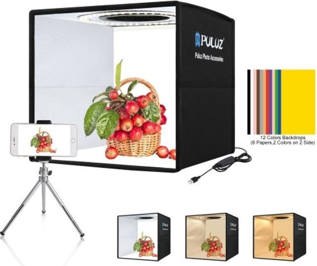 Improve your sales opportunities with perfect photos. Capture high-quality product images for flyers, brochures, websites, or online auctions in your new photo tent. The integrated 96 LEDs provide photo-friendly lighting, minimizing shadows and nearly eliminating color distortions. Included are 12 different colored backgrounds, giving you plenty of options to find the perfect backdrop for each item. The light tent is quick and easy to set up and ready for use immediately. After use, it can be quickly folded down to a compact size. Connect the included USB cable to a laptop or PC, choose the ideal background, place your item in the photo box, and you're ready to start shooting. The LEDs can be adjusted in brightness (dimming range: 1% - 100%) and in three different light colors (white light, soft light, warm light). A storage bag is also included, allowing you to safely store and easily transport the light tent.