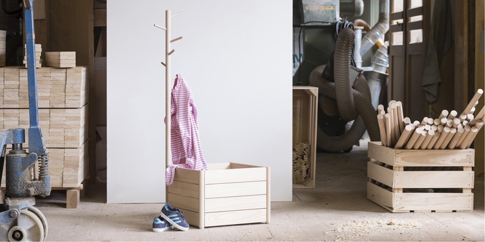This makes the pyjama pole, made from Swiss beech and pine wood, a valuable everyday companion. Set it up in the bedroom or kids room and use it as a stopover for worn garments. It also works in the entrance to deposit jackets and scarves. What’s more, the basket offers plenty of space for shoes or umbrellas.