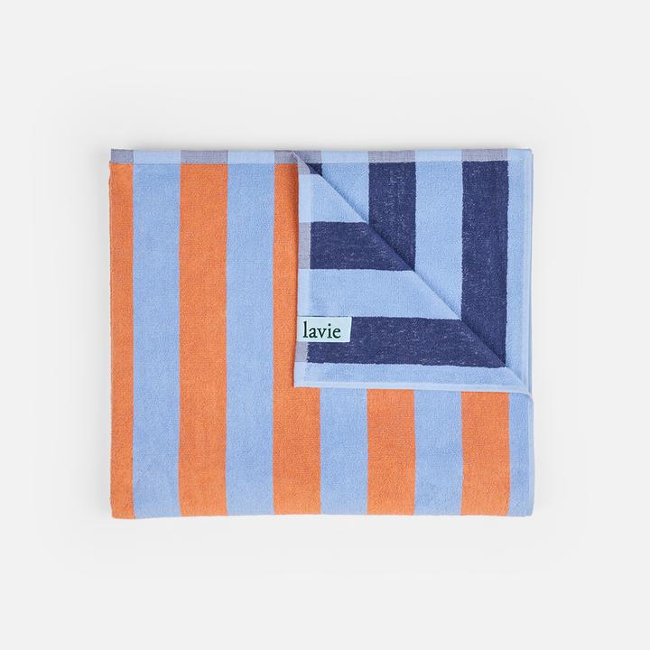 Two sides, one statement: Pepa provides a double dose of color at the beach, pool, and in the bathroom. The front and back of this beach towel feature different color designs. With its vibrant block stripe design, Pepa is fresh yet nostalgic, bringing as much summer joy as a few grains of sand between your toes. The generous beach towel measures 100 x 180 cm and is made from 100% organic cotton.