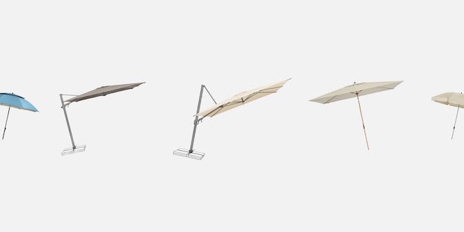 Probably the most common solution of a sunshade is the parasol. Whether for garden or terrace, the parasol fits many outdoor areas. It is available in all colors, shapes and sizes and can be easily folded and stowed away after use. If you don't have a built-in mount for the parasol, an umbrella stand is a good choice. The heavy bases will hold the umbrella even in a bit of wind.