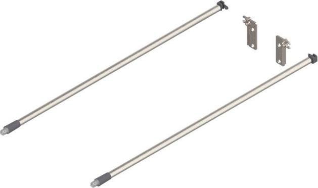 The MOVENTO longitudinal rail set from Blum is a high-quality furniture accessory designed for easy and flexible installation. It consists of two adjustable longitudinal rail rods equipped with a special Inserta expansion dowel, allowing for tool-free installation. This set is complemented by two chrome-plated wall brackets that are not only functional but also provide an appealing look. The use of steel as a material ensures durability and stability, while the chrome-plated surface guarantees an attractive aesthetic. With a length of 500 millimeters, the set is versatile and ideal for various furniture applications. The combination of thoughtful design and practical features makes this set an excellent choice for customizing living spaces.