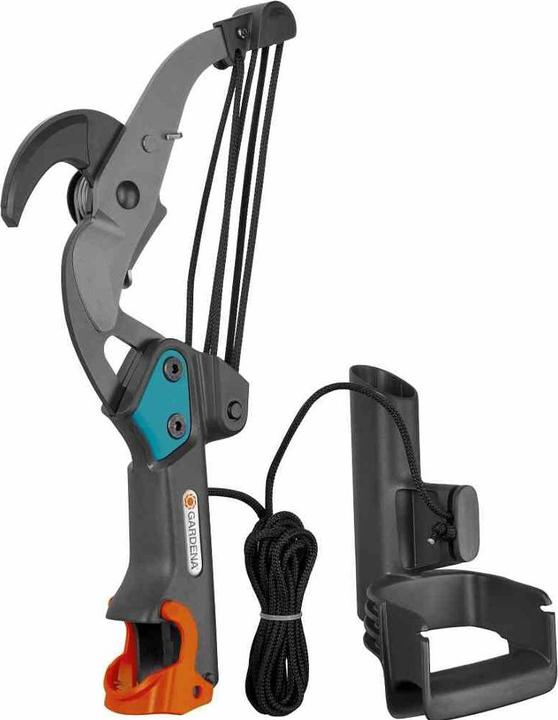 The Gardena combisystem anvil pruning shears with 5-fold roller transmission are ideally suited for cutting branches in tall trees. In combination with a Gardena combisystem telescopic handle, branches can be comfortably shortened from the ground without a ladder to great heights. The integrated double lever transmission and the 5-fold roller transmission ensure enormous power savings. This ensures effortless cutting of branches up to approx. 35 mm branch diameter. The non-stick coated knives with a special blade geometry for fixing the branch (cannot move during cutting) guarantee a clean and exact cut and easy cleaning. Particularly convenient: With the Astein suspension, even less force is required for cutting. Thanks to the adjustable D-handle, powerful, comfortable and ergonomic operation is possible. The D-grip has a rope winder with fixation for the rope ends on both sides so that it cannot knot during work and storage. The rope itself is 4.7 m long and tear-resistant. The Gardena combisystem anvil pruning shears can also be used without a handle. The warranty period is 25 years.