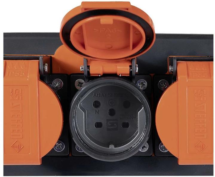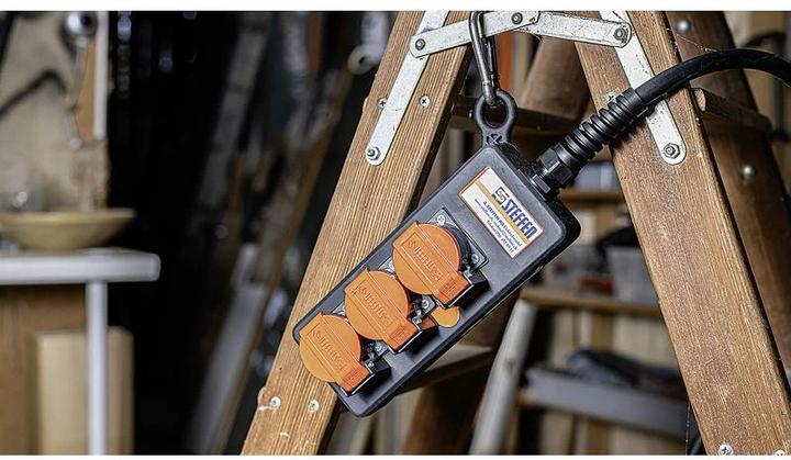 Professional socket strip with suspension hook.