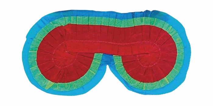 This might look like artwork made by a schoolkid or a random collection of colourful post-it notes, but it’s not. In fact, it’s a blindfold. More precisely, a special Piñata blindfold. Piñatas are papier-mâché animals that are filled with sweets and then need to be hit open with a stick by a blindfolded person.
