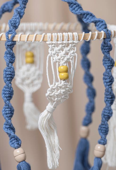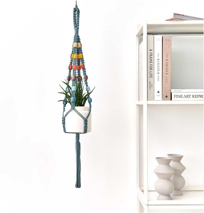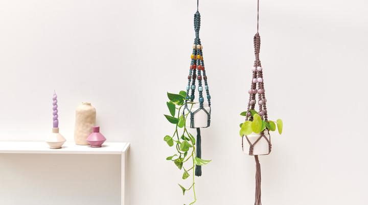 Macramé is a huge trend for DIY home decoration. Thick macramé strands are used to create plant hangers, wall hangings, and other decorations. Wooden beads, which are incorporated into the macramé pieces, provide particularly special highlights. The beads, with their extra-large holes of about 10 mm, are perfectly suited for thick macramé yarns. Thinner yarns can also be easily threaded through the beads in double strands.