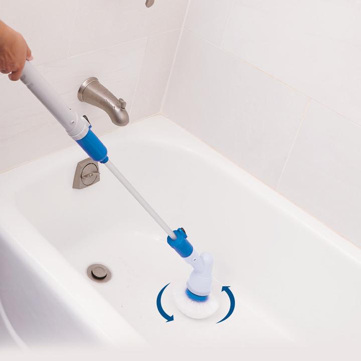 No matter where or what you are cleaning, there always comes a point when a thorough scrubbing is necessary. This can lead to back pain, knee problems, or other discomforts. Let your Hurricane Spin Scrubber take care of the scrubbing instead. The rotating head with 3000 cleaning bristles spins at up to 300 revolutions per minute, making it easy to clean bathrooms, kitchens, and more without much effort. You can avoid the strain of bending, kneeling, or stretching while cleaning. Simply turn on your Hurricane Spin Scrubber, clean the desired area, and you're done. You'll receive 3 different attachments with your Hurricane Spin Scrubber. The cone-shaped brush attachment quickly cleans tight and small joints in seconds. The dome-shaped brush attachment is perfect for sinks and shower trays. For floors and walls, the flat brush attachment is ideal. With the handy extension pole, you can easily reach high and deep areas. With your Hurricane Spin Scrubber, you can clean everything from large surfaces to the smallest crevices, whether indoors or outdoors. Thanks to the rechargeable battery, you won't even need batteries and won't have to deal with annoying cords anymore. Say goodbye to tedious scrubbing - now the Hurricane Spin Scrubber does the work for you.
