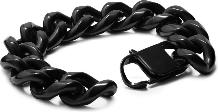 The only neutral aspect of this extra thick men's bracelet is the color. The black version made of solid stainless steel goes with everything. It can be comfortably fastened with a lobster clasp.