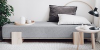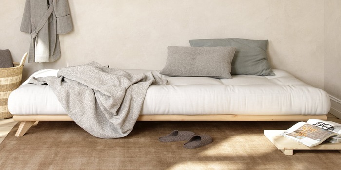 Bien entendu, tous les canapés sont faits pour s’y détende, mais dans un modèle d'une hauteur de 21 centimètres qui est en plus surbaissé à l’arrière, on ne peut que s’y enfoncer. Pour transformer « Lean » en lit, il vous suffit de rabattre le dossier comme dans la vidéo, et vous obtenez déjà une surface qui suffit tout juste pour deux personnes ; à condition qu’elles ne soient pas trop grandes et qu’elles aiment se câliner. La housse en mélange de coton et de polyester est disponible dans de nombreuses couleurs. Mais c'est en beige ou en gris, avec sa structure en pin clair que le canapé surbaissé offre le look le plus aérien. Seul point négatif : se prélasser sur le côté n'est possible qu'avec des coussins en raison de l'absence d'accoudoirs.