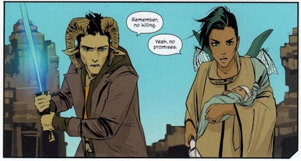 Source: ImageDans un futur utopique, un couple issu de deux races ennemies a un enfant et devient le centre d’un conflit galactique. Fuyant les chasseurs de prime, les robots téléviseurs aliens et les belles-mères, cette jeune famille ne doit pas seulement lutter contre de nombreux dangers, mais également contre elle-même. Histoire de science-fiction très prenante, complexe et variée.