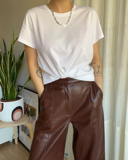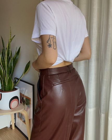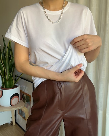 Avec des pantalons baggy, un T-shirt ample peut vite être peu flatteur. Pour un style plus près du corps, refaites la même chose que la variante 3, mais cette fois au dos du T-shirt.