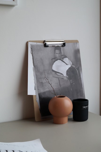 Dans le monde numérique d'aujourd'hui, j'ai de moins en moins recours au papier et au crayon, et encore moins à un porte-bloc que j'ai connu à l'école. J'ai donc décidé de le transformer : Je coince mes photos dans le tableau et je le place sur mon buffet. Vous pouvez aussi choisir votre bureau ou toute autre surface nue. Cette variante est tellement simple qu'il n'y a aucune raison de ne pas l'essayer.