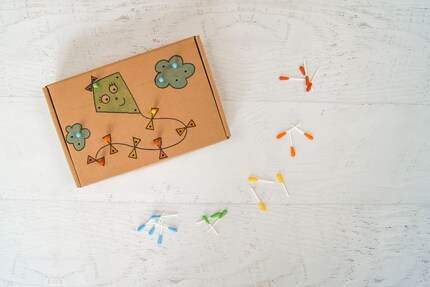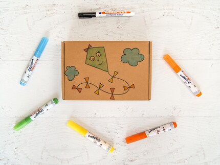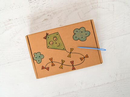 Décore la boîte en carton avec un motif joyeux qui correspond à ton enfant.