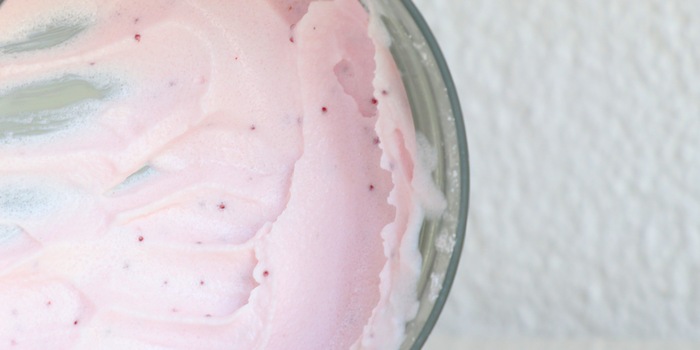 La crème de douche exfoliante et hydratante de Dove contient de la grenade, du beurre de karité ainsi que des particules exfoliantes naturelles et des perles de cire de jojoba. J'applique d'abord le produit à sec, puis j’humidifie mes mains pour le masser. La consistance du soin me rappelle celle d'un masque à l’argile, il a un parfum frais et fruité. Le gommage est-il efficace ? Mes squames et les restes d’autobronzant ont complètement disparu.
