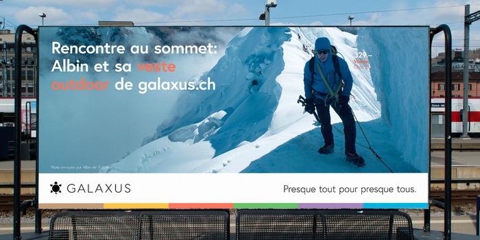 Récompense des meilleurs envois. Toutes les photos et vidéos qui seront utilisées pour la campagne participeront automatiquement à un concours sur Facebook, où les utilisateurs pourront sélectionner leurs photos et vidéos préférées. Les deux gagnant(e)s recevront en plus un bon d'achat Galaxus de CHF 1000.–!