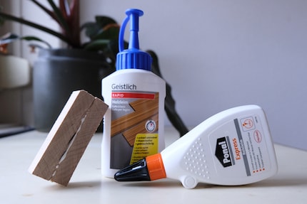 La consommation de colle est inversement proportionnelle au niveau scolaire. Jusqu'à présent, j'ai utilisé les plus grandes quantités de colle à bois pour des œuvres primitives en papier mâché à l'école maternelle. Ensuite, la courbe a constamment diminué. Aujourd'hui, je ne l'utilise plus que très rarement pour des réparations. Ma colle à bois Rapid de Geistlich est restée intacte dans un tiroir depuis des mois. Elle peut enfin sortir pour un test comparatif. Mes collègues du département produits me disent que son concurrent est la colle à bois Ponal Express, qui est probablement très bonne et que je devrais donc l'essayer.