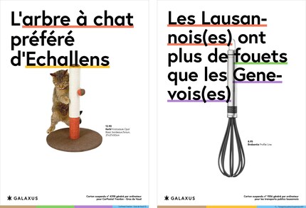 La nouvelle campagne publicitaire Galaxus est sortie. Les 11 214 affiches, affichettes, eBoards, ePanels et publicités reflètent le comportement d'achat régional. Tous les sujets sont des exemplaires uniques générés par ordinateur et chacun est créé pour un placement spécifique.