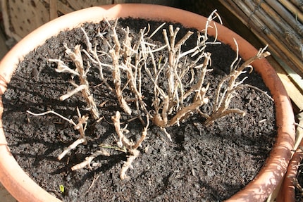 Une plante aromatique dont les pousses ont été rabattues et mesurent à présent entre 5 et 7 cm.Rempoter