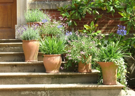 Plantes exotiques décorant des escaliers.L’hivernage des plantes exotiques
