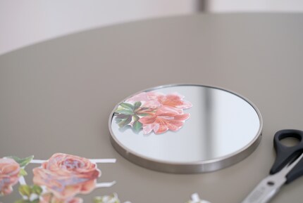 Pour décorer, on utilise aussi des moyens naturels comme les fleurs. Des roses, des fleurs de paille ou de l'eucalyptus - il n'y a pas de limites à votre imagination. Utilisez du fil de fer pour fabriquer une couronne de fleurs de la taille de votre miroir. Lorsque vous choisissez des fleurs, assurez-vous qu'elles sont séchantes. Vous profiterez ainsi plus longtemps de votre couronne. Ensuite, fixez la couronne sur le cadre.