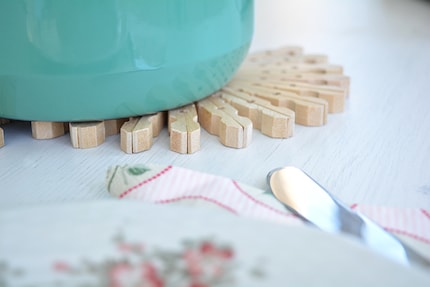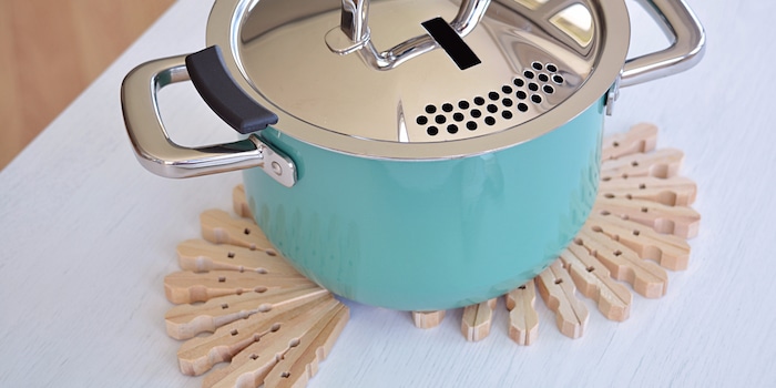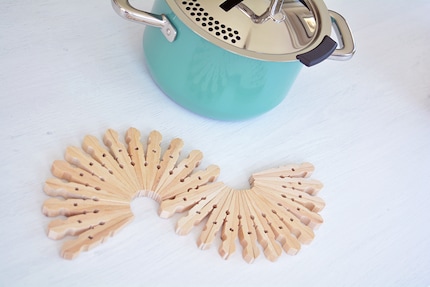 Il est très facile de fabriquer soi-même des dessous de plat qui s'adaptent à la taille de la casserole. Il suffit de disposer de quelques pinces à linge.