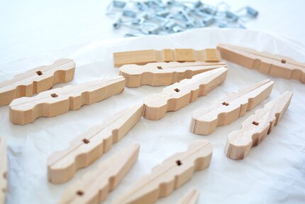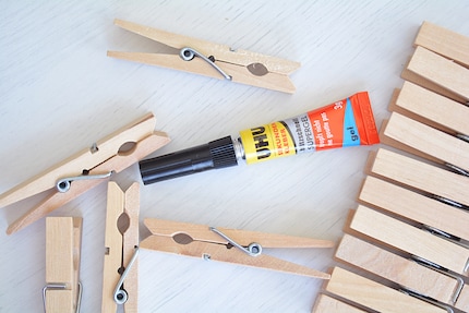 Etape 2: Colle maintenant les deux parties de bois détachées dos à dos avec la colle forte et laisse sécher la nouvelle structure. Il est préférable de préparer toutes les pinces à linge de cette manière avant de passer à l'étape suivante
