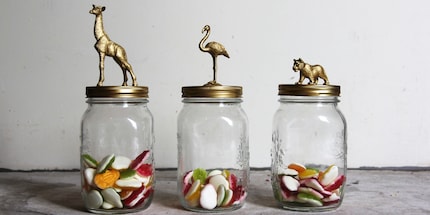 Collez les figurines sur le couvercle des bocaux et laissez sécher. En fonction de la marque, la colle a besoin de plus ou moins longtemps pour sécher. Ne soulevez pas le bocal en le tenant par la figurine – les animaux ne sont pas assez robustes pour pouvoir porter le poids du verre de 1l, mais ils remplissent parfaitement leur rôle de déco.